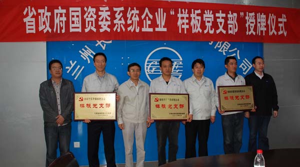 授牌仪式上,省政府国资委党建处处长张烈祖一行三人,代表省政府国资委党委为长城电工所属天水长城开关厂有限公司箱壳制造部党支部、天水二一三电器有限公司装配分厂党支部和天水长城果汁集团公司陇南公司党支部颁发了“省政府国资委系统企业样板党支部”牌匾。