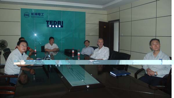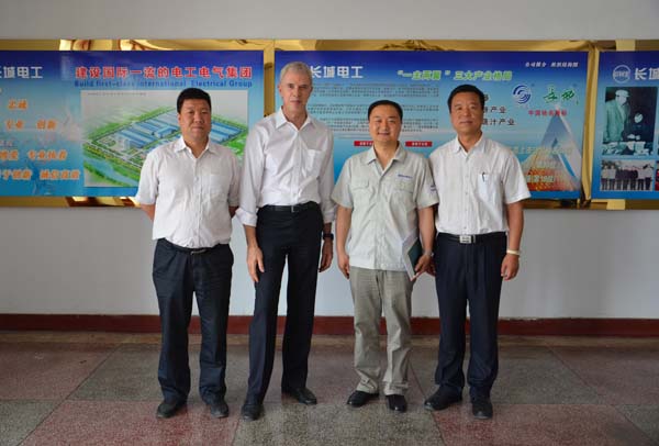 公司总工程师张建成和长城电工电力装备公司总经理石立峰陪同客人参观了长城电工长开厂公司、二一三公司、天传所公司和产业园。